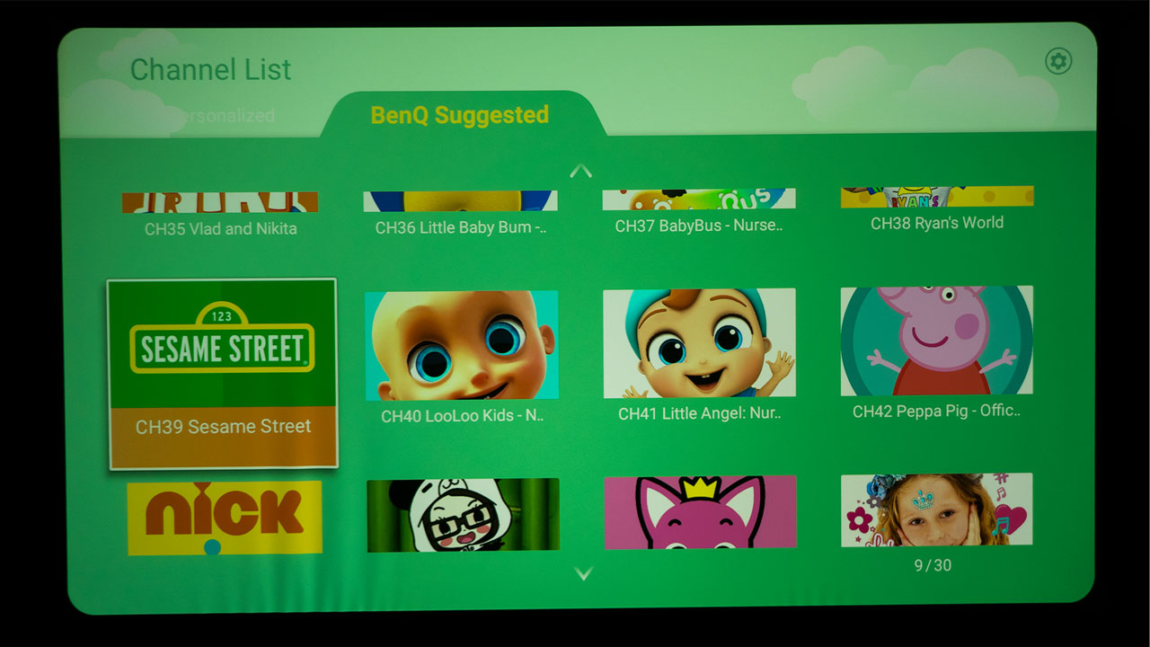 The BenQ QS01 ATV also gives access to BenQ’s FamiLand Kids Channel (TV). BenQ states, “BenQ FamiLand Kids Channel (TV) collects content most suitable for kids to watch from YouTube and channelize these playlists to let kids choose the channel they want to watch.”