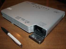 This Casio has a 2:1 zoom lens, that means far more placement flexibility than most small portable projectors (which typically have 1.2:1 or maybe as much as 1.5:1).