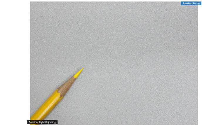 Elite Pro AV offers several different ceiling/ambient light rejecting screen materials. CineGrey 4D is angular reflecting ALR material capable of rejecting up to 63% of ambient room lighting. It has a gain of 1.1 and a viewing angle of about 70 degrees. This CLR material is designed specifically for use with standard throw projectors.