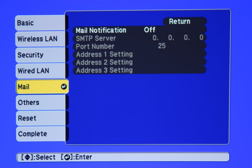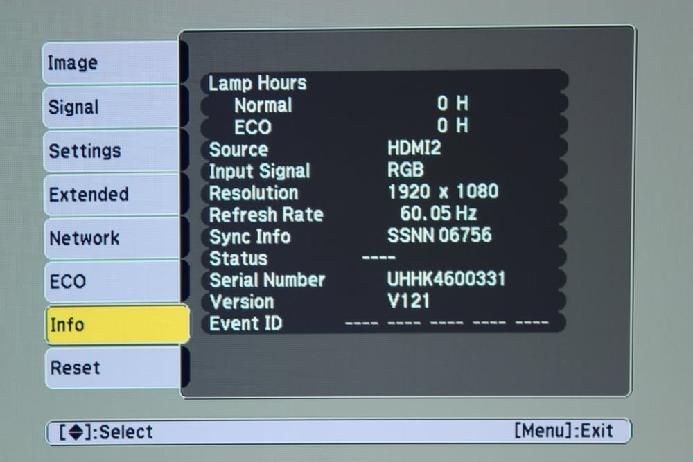 There are also menu items to set the menu Language and to reset the projector to the factory defaults.
