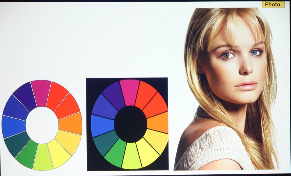 As can be seen in the gallery photos above, the Brightlink Pro 1430Wi does a very good job in clearly displaying text. I noted just a very little red-blue-green misconvergence when viewed up close to the screen, but his was not visible from normal viewing distance. Convergence is never perfect with any projector using 3 display chips, be it a LCD, DLP or LCoS based projector. The recent Epson models that I have reviewed have, overall, been improved in this respect than the typical 3 chip projector from just a few years ago. The sharpness/readability of text projected by the 1430Wi is primarily limited by the projector’s native 1280 x 800 resolution rather than its lens or the convergence of the 3 primary colors. This is a good thing as some ultra-short throw projectors have a problem in achieving uniform focus over the entire projected image, but this is an not issue with the 1430Wi.