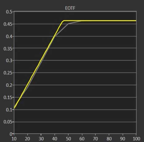 The HC3000 Gamma settings are described using Gamma numbers. The settings are listed as -2 to 2. In Natural Mode the default Gamma setting is 0 which measured as Gamma 2.0. None of the factory Gamma presets allowed me to hit my target of 2.2. The -2 setting was too dark, while the -1 setting was too bright.