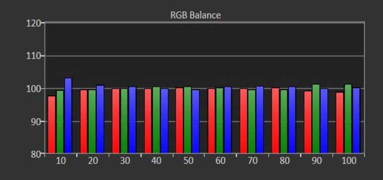 I left Sharpness along with Color and Tint at their defaults. The color temp pre-set was Medium which measured an 8500K average (plus blue / minus red). Setting the Color Temp to 6000K resulted in a white balance just under 6500K so I made some small adjustments to the Red Gain and Blue Gain to raise it back to a 6500K average.