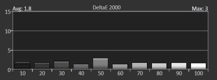 Delta E is a metric for understanding how the human eye perceives color difference. The term delta comes from mathematics, meaning change in a variable or function. The suffix E references the German word Empfindung, which broadly means sensation. Simply put, look at Delta E as a measure of grayscale/color accuracy. 3 and under is considered ‘Excellent’ and imperceptible by the human eye.