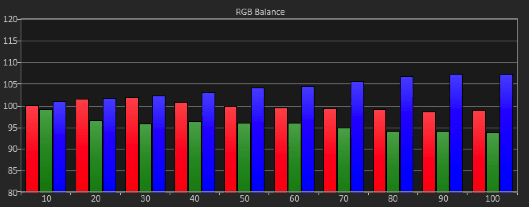 Now look at post calibration, by comparison, the RGB balance is almost dead on the money: