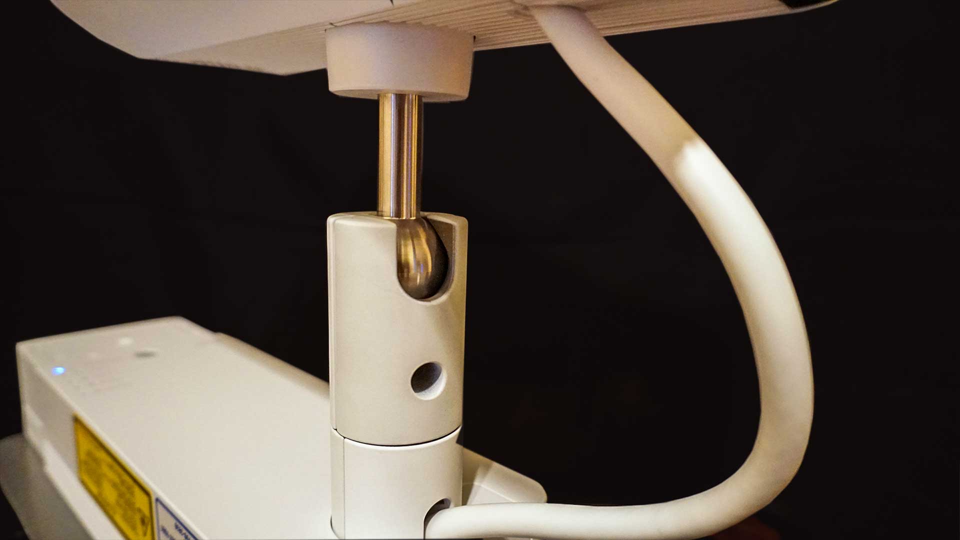 Like a traditional track light, the EV-100's projector assembly is attached to the power supply unit via an adjustable ball joint. Once the EV-100 is mounted loosening the ball joint screw allows the projection assembly to be rotated 360° horizontally and 90° vertically. You can also tilt the image 90° in either direction. Once the projector assembly is properly positioned, just tighten the ball joint screw to prevent any additional movement.