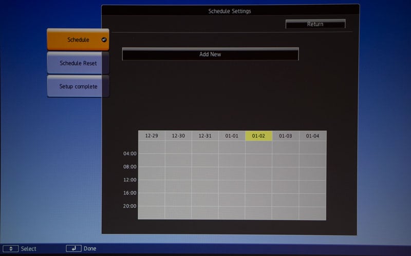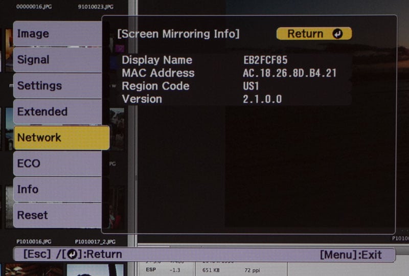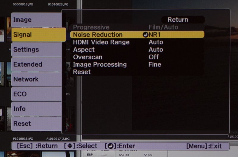 This Epson uses the same basic menu organization they have used for many years. In addition to all the usual sub-menus, there is a complete menu system for the wired and wireless networking setup. The PC1985 incorporates the same feature set as the commercial version, and Epson did not bother to hide some of the options that really aren't geared for home use, such as the rather capable Scheduling system. Below are a number of menus and sub-menus in the player. Where helpful I've added some comments about the features shown.