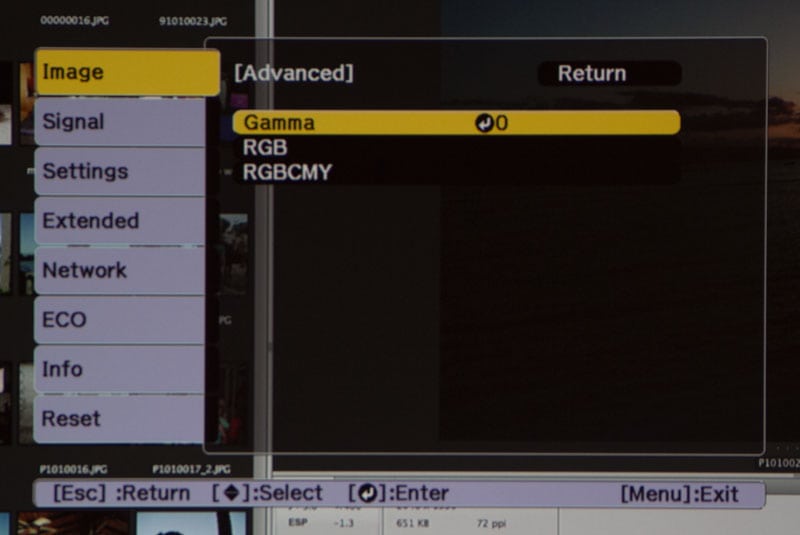 The first main menu, has most color and picture quality controls, multiple sub-menus