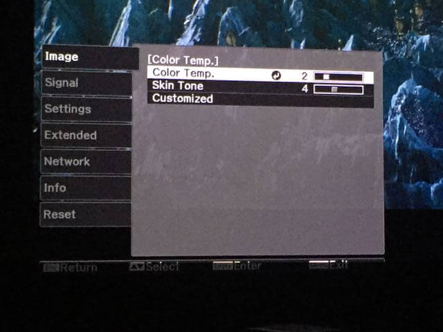 Bright Cinema Mode Bright Lamp & Mid Zoom Color Temp = 5 pre-set |