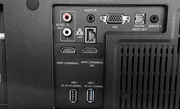 Below the RJ45 network connection are a pair of HDMI connectors. Both are apparently HDMI 2.0 or higher as both indicate 4K@60Hz It is possible that some very old HDMI devices won’t work with the HDMI 2.0, which is why many home theater and home entertainment projectors offer one HDMI 1.4 and one 2.0 or higher.