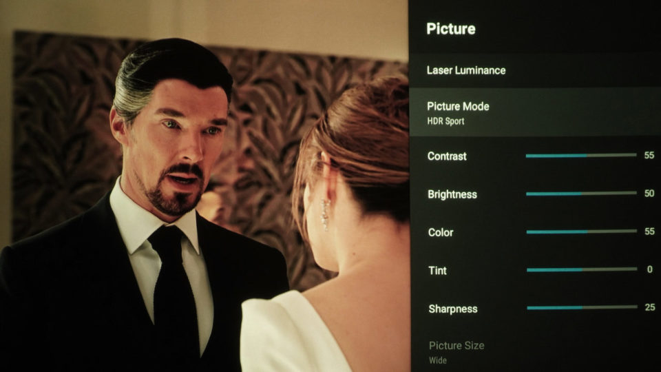 The Hisense L5G utilizes a Texas Instruments Digital Light Processor (DLP) (0.47″ DMD) chip to deliver a 4K UHD (3,840 x 2,160 pixels) resolution. The 0.47″ DLP chip has 2.2 million pixels, or in this case, micromirrors. The response time of these micromirrors is so fast that each one can be quickly moved back and forth to form four separate pixels on the screen. This approach works very well because it is tough to see a difference in resolution when comparing a 4K DLP projector to a native 4K display. The projector can also accept signals up to 4K@60P via two HDMI/HDCP 2.1 compatible Inputs (HDMI #1&2).