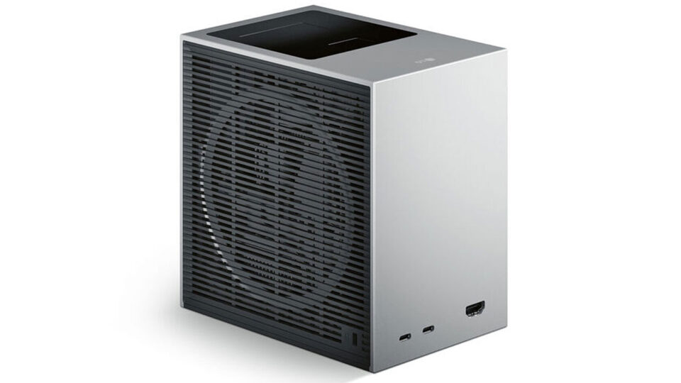 The CineBeam S stands out for its minimalistic appearance and extremely small footprint. Measuring just 4.3 inches by 6.3 inches by 6.3 inches and weighing 4.2 pounds, the projector is smaller than many competing UST models on the market. Its metallic finish is intended to blend seamlessly with modern interiors, allowing it to function not only as a technology product but also as a design element.