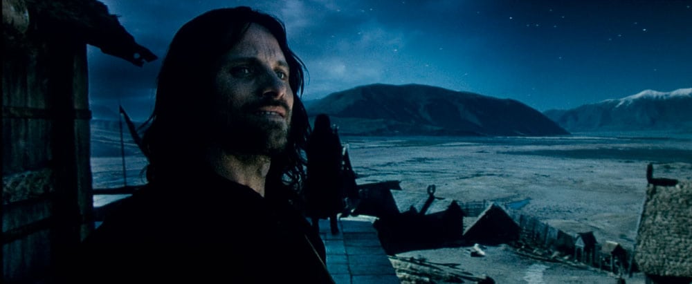 On a dark scene like the one, right above from Lord of the Rings, the image is all pretty dark, but blacks aren't critical. Still this LG appeared a little flat on the left side and his shirt.