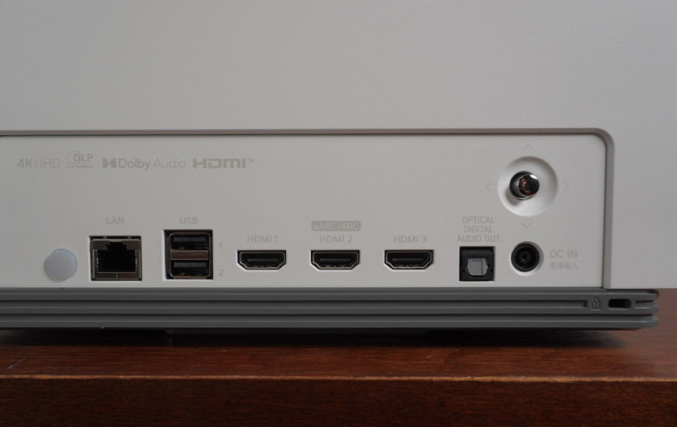 All of the inputs and connections are located on the rear of the HU710PW. There are three HDMI inputs. Two are 18 Gbps HDMI 2.0b inputs, and a single HDMI 2.1 input supports up to 24 Gbps allowing playback of 4K HDR content with 10-bit color and Enhanced Audio Return Channel (eARC) support. This 24 Gbps of bandwidth is more than enough to maximize the projector's full capabilities.