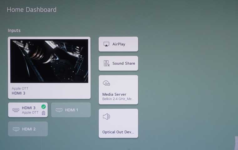 Other available inputs include two USB Type A ports, an RJ-45 ethernet port, and an optical digital output.