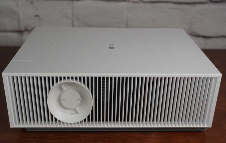 The LG HU710PW has a manual lens with outer rings for controlling both Focus and Zoom. With a zoom range of 1.6x and a throw ratio of 1.3 - 2.08, the throw distances can quickly be calculated based on the screen's width. For example, on a 100″ wide image, the throw distance would be between 9.51 and 15 feet.