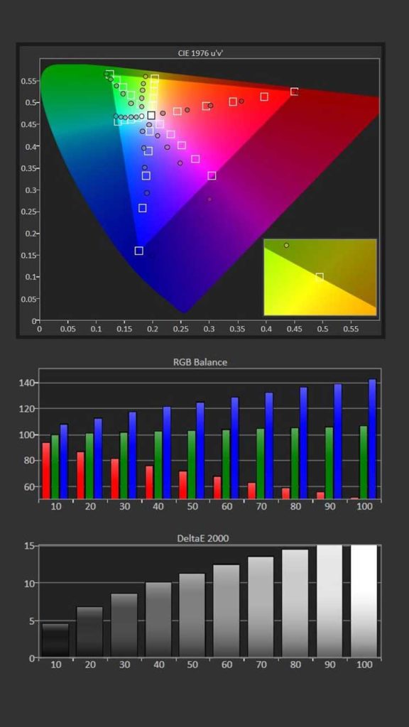 The RGB balance was deficient in Red giving images a green or blueish tint. When measured, the color temperature was just a few hundred degrees off my target of 6500K.