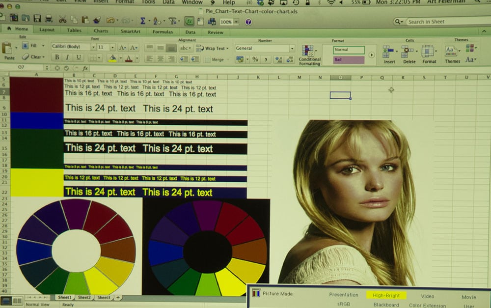 Now if you need maximum brightness because you are dealing with a large projection or a whole lot of ambient light, you can use High Bright, which is a typical Dynamic mode - heavy on green - yellow. It's not real pretty, but it will get the job done, if you need every last lumen. These images were all taken with the same exposure, so you are seeing their relative brightness.