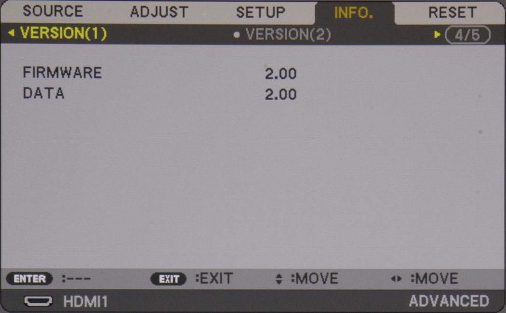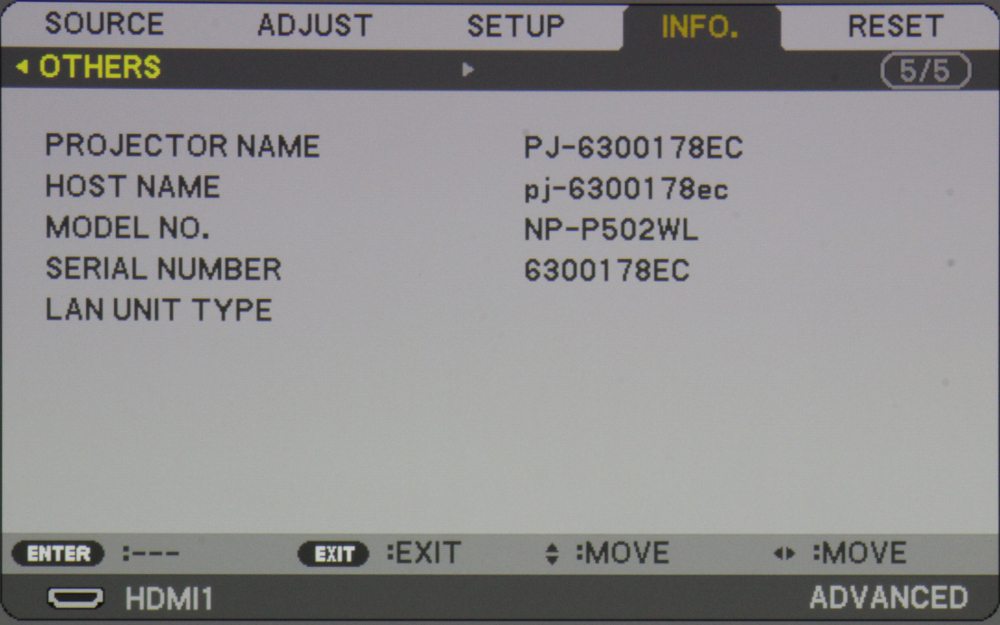The ‘Info’ menu provides several categories of information. The 1st photo above shows the certain essential usage information about the projector itself, including the number of hours of operation (i.e., Usage Time) for the projector's light source.