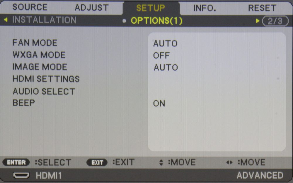 The 6th and 7th photos above show the Options 1 and Options 2 submenus that offer a number of projection configuration settings.