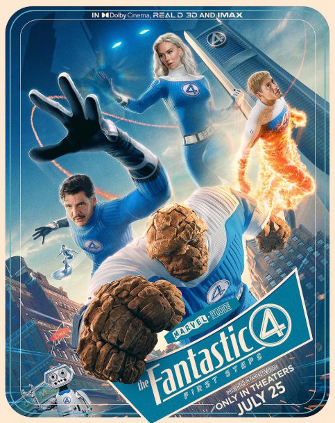 Set against the vibrant backdrop of a 1960s-inspired, retro-futuristic world, Marvel Studios’ “The Fantastic Four: First Steps” introduces Marvel’s First Family—Reed Richards/Mister Fantastic (Pedro Pascal), Sue Storm/Invisible Woman (Vanessa Kirby), Johnny Storm/Human Torch (Joseph Quinn) and Ben Grimm/The Thing (Ebon Moss-Bachrach) as they face their most daunting challenge yet. Forced to balance their roles as heroes with the strength of their family bond, they must defend Earth from a ravenous space god called Galactus (Ralph Ineson) and his enigmatic Herald, Silver Surfer (Julia Garner).