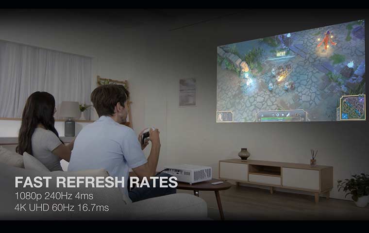 On paper, the UHZ50 is a formidable home theater projector. The features I've described above would make it an impressive value, but Optoma decided to go a little further and build in an Enhanced Gaming mode with very low Input Lag. The UHZ50 does not support 4K 120Hz gaming, but it does allow gamers to enjoy fast-moving action with a 16.7ms response time in 4K at 60Hz and a 4ms response time in 1080P at 240Hz.
