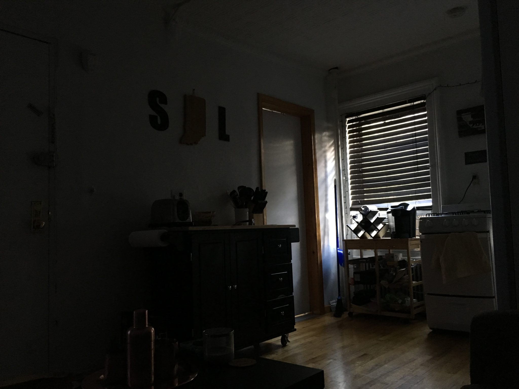 As I have previously said, I had the perfect wall for placing a TV from a viewing standpoint, but my front door (right next to that wall) can swing all the way open, so that was just an accident waiting to happen. Now, I just point the projector at the wall (which is, conveniently, about as white as any proper projector screen would be), and go! I place the projector on my coffee table, it points directly at the crease between my living room wall and the front door. I thought this would be distracting, but the projector is bright enough that I hardly notice the faint crease while viewing.
