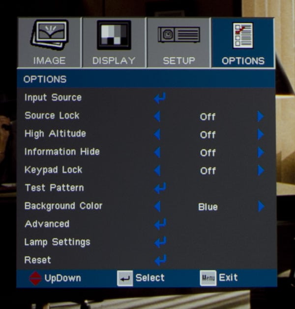 End note on the subject, it has a ±40° vertical keystone correction that will accommodate you nicely in either a ceiling or tabletop installation. The weight is only 5.9 lbs. which isn’t bad for a compact projector that puts out this much light. Its physical dimensions are 11.3” wide, 3.9” high and 9.6” deep making it an easy armful but not cumbersome by any means for what it is.