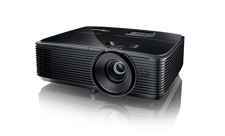 The Optoma HD143X is compact, measuring just 12.5” wide, 9.75” deep, and 4.25” tall. Its small footprint and weight of only 6.75 lbs makes it portable enough to take in a carry on, pack up in a backpack, or simply move from room to room. It can be placed on a high rear shelf or ceiling mounted.