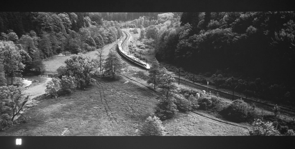 Optoma HD23 - Note that the HD23 might just reveal a touch more dark shadow detail (lower left, above the tracks, and in the woods), but has far less pop to dark scenes like this, compared with the HD25-LV projector. Attribute that to the '25's superior blacks.