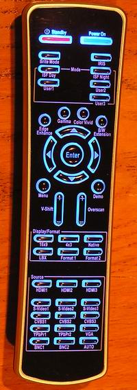 Unlike many projectors the HD81 has one button for powering up, the other for off. Below them, your primary preset modes, which consist of Users 1,2,3 and the ISF Day and Night settings. The last button in the group, is the Iris control. (I'm not sure why its up there, but, it's easy to find.