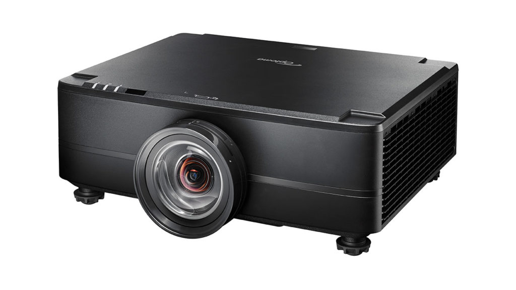 This projector uses Optoma's DuraCore laser/phosphor light source. It is IP5X-certified, thanks partly to its sealed light engine. This projector also uses a Texas Instruments DLP DMD imager and color wheel. Unfortunately, despite asking twice, Optoma refused to give me the size of the DLP chip or the type of color wheel they use.