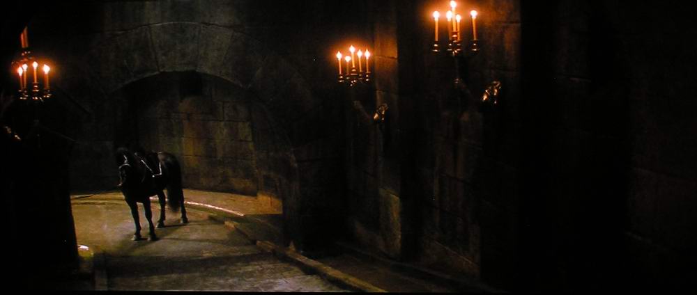 Below are several images from Sin City (standard DVD), and exceptionally dark movie, that is primarily shot in black and white or sepia and white, with spot colors added.