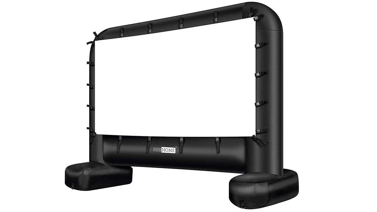 The VIVOHOME screen is easy to set up and it is available in several sizes ranging from 14ft to 24ft. This affordable inflatable movie screen is made of high-quality, durable cloth and is seam-free to ensure a quality viewing experience. Long-lasting weather-resistant material allows long time indoor or outdoor use. It includes a quick blower that can blow up the movie screen in a few minutes and, when plugged in, keeps it inflated throughout the show. The fan pump is quiet to ensure that the screen stays expanded without adding distracting noise.