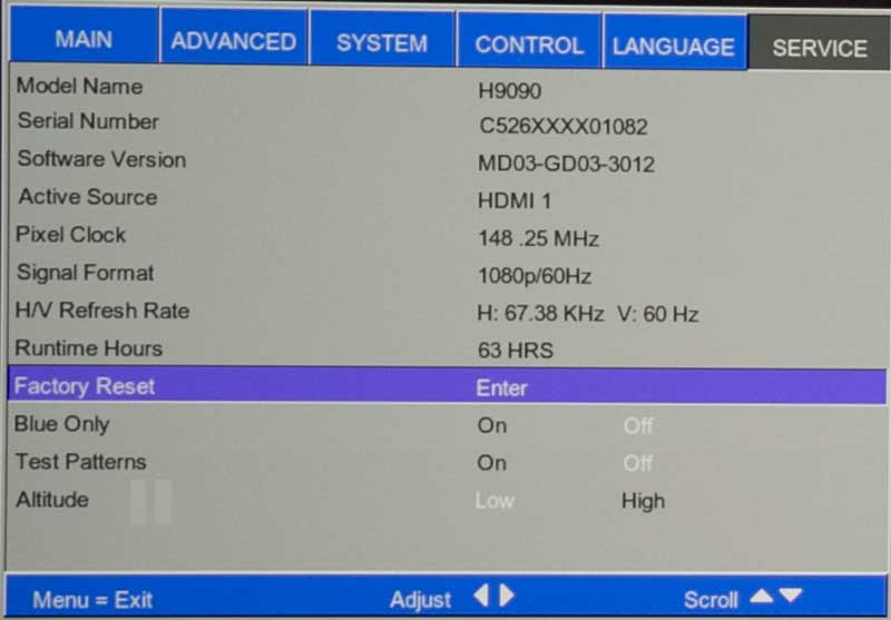 All the major and most minor menus are here. Some have comments. As I said previously, the H9090's menu system is old school. You won't find preset modes like Theater, Living Room, Film, Natural. But you can save four of your own.